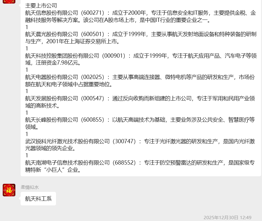 当市场迷雾笼罩,总有一群强者以远见为锋、以同心为盾,在涨跌博弈中劈开混沌;当热点轮动加速,总有一支劲旅以精准为刃、以坚守为基,在机遇浪潮中独占鳌头。2025年12月8日至2026年1月9日,我们——股市休闲团体,用一场横跨月余的实战征程,书写了关于实力与凝聚力的巅峰答卷。 短线惊雷:精准狙击 引爆势能 短线战场,唯快不破;热点博弈,唯准不立。我们摒弃犹豫观望,直击市场核心脉络,于创业板与主板标的中精准锁定爆发力引擎。300751、300342双雄齐驱,以锐不可当之势撕开上涨通道;300503、300446、300433紧随其后,多点开花引爆短线热潮;600498、000960沉稳发力,在震荡中突围而出。更有高光操作惊艳全场——周四果断布局000917,次日便强势封板,一日斩获涨停硕果,用极致效率诠释短线博弈的巅峰水准,完美印证“强者恒强”的实战哲学。每一次介入都踏准节奏,每一次离场都果断从容,这不是运气的偶然眷顾,而是团体成员无数次复盘沉淀的必然结果,是心有灵犀、同频共振的实力彰显。 波段登顶:顺势而为 再攀新高 波段征程,贵在审时度势;价值挖掘,重在凝心聚力。我们不恋短期浮华,深耕趋势赛道,于行业轮动中捕捉确定性机遇。300058、601179、601600稳步攀升,在波段行情中走出昂扬曲线;002342、605598、603598厚积薄发,以坚韧态势突破前期瓶颈;600776、600862逆势而上,在市场分化中锚定方向,用持续走高的态势诠释“顺势而为”的智慧。从标的筛选到仓位协同,从趋势研判到节奏把控,团体成员各司其职又紧密联动,用集体智慧抵御市场波动,在波段博弈中步步为营,终达新高之巅。 航天领潮:八剑齐发 冠绝全场 最是传奇震撼人心,最是同心所向披靡。2025年12月30日,我们精准预判航天科工系投资机遇,重磅布局600855、600271、600501、000901、000547、688552、300747、002025,八只核心标的,以“八剑齐发”之势开启领涨征程。短短十余日,8只标的尽数突破历史新高,成为市场中最耀眼的明星组合 !周四单日5只标的强势封板,600855一周两度涨停,600271、000901、688552等标的接力冲高,掀起一波又一波涨停狂潮,完美契合商业航天产业爆发的时代风口。这不是孤军奋战的侥幸,而是团体成员深耕行业、协同研判的巅峰之作;不是零散标的的简单堆砌,而是凝心聚力、精准布局的战略胜利,彰显了我们“看透本质、引领趋势”的硬核实力。 同心为炬:聚沙成塔 势不可挡 市场风云变幻,唯有同心者胜;投资征途漫漫,唯有笃行者远。一个月的时间,二十余只标的,从短线爆发到波段新高,从多点开花到航天领涨,我们用实战成果证明:伟大的征程从来不是孤军奋战,而是一群人朝着同一个方向,以专业为基、以信任为桥、以坚守为翼,在市场浪潮中并肩前行。每一次标的筛选都经过集体研讨,每一次操作决策都凝聚众人智慧,每一次上涨突破都见证同心力量。 没有凭空而来的成功,只有日积月累的沉淀;没有一蹴而就的传奇,只有众志成城的攻坚。股市休闲团体,以远见洞察机遇,以实力驾驭市场,以凝聚力铸就传奇。未来,我们将继续秉持初心,踏浪而行,与志同道合者共赴更高峰,在资本市场的星辰大海中,续写属于我们的荣耀与辉煌!